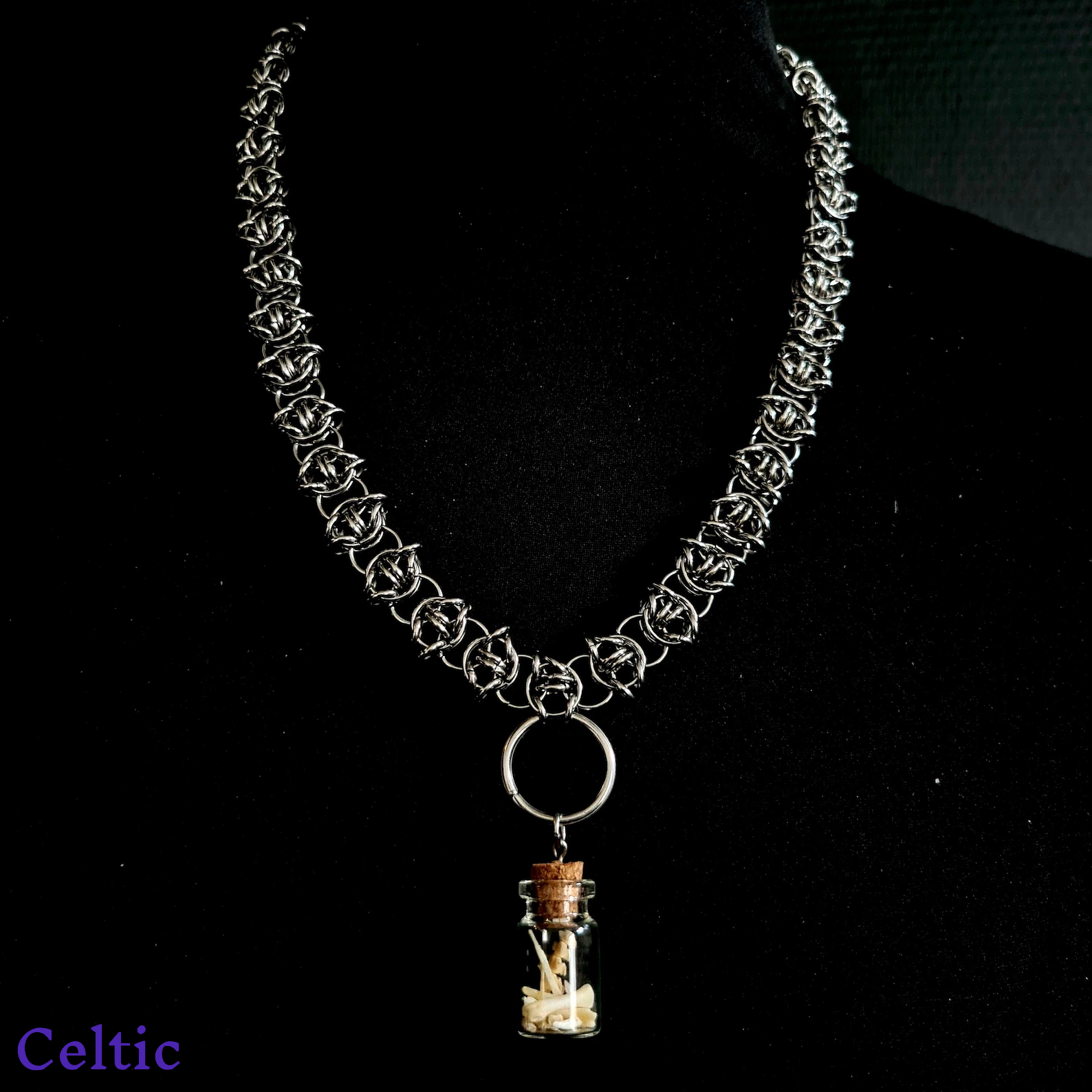 Chainmail Necklace with Vial of Bones